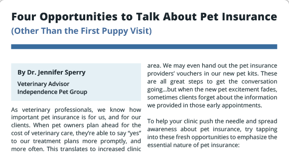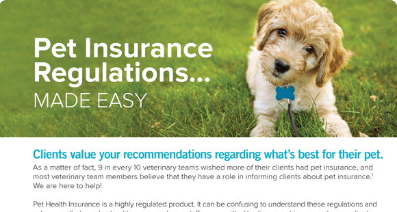 Insurance is a regulated product and requires a license to sell and market. The information provided is a resource for vets and their staff but is not an authorization to sell or solicit insurance without a license.