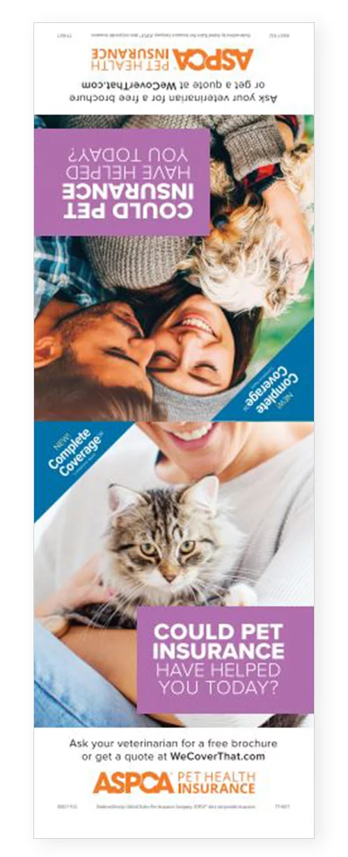 Help your clients to understand the benefits of pet health insurance by displaying this poster in your waiting room and exam rooms. The poster outlines what’s covered under the ASPCA® Pet Health Insurance program.