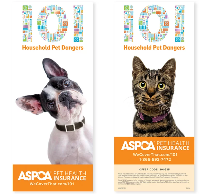 Help your clients to keep their pets safe. This brochure includes a list of 101 household pet dangers, including hazardous products, objects, plants, foods, and more.