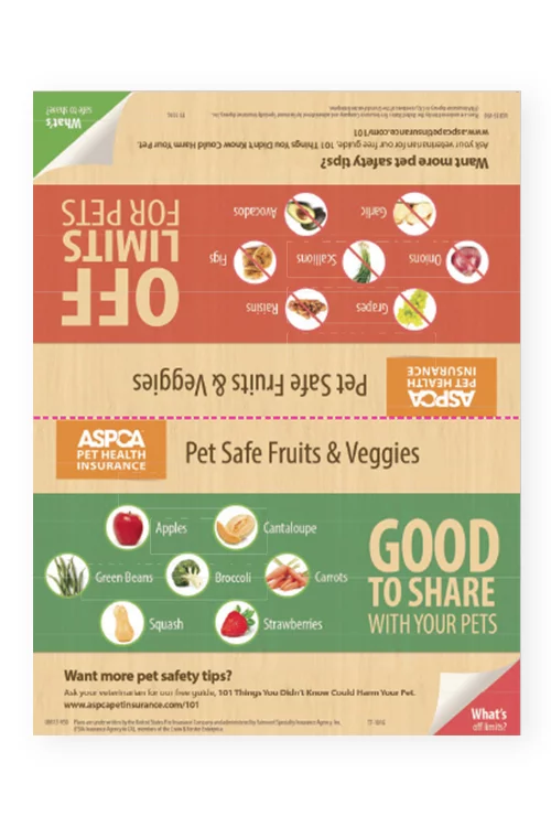 This 2-sided table tent helps increase your clients’ awareness of the fruits and vegetables that are harmful for pets, and provides safe alternatives.